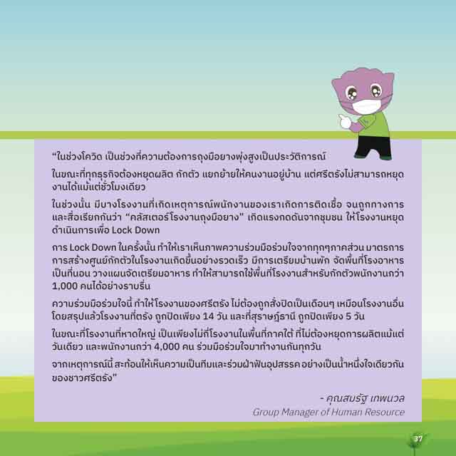 ค์วามุร่วมุมุือร่วมุใจึนี� ทำาให้ โรงงานของศรีตัรัง ไมุ่ตั้องถึ่กสู่ั�งปิ ดเป็ นเดือนๆ เหมุือนโรงงานอื�น