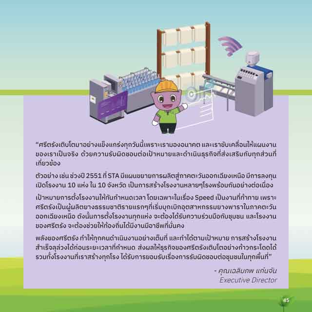 ตััวอย่าง เชิ่น ชิ่วงปี 2551 ที� STA มุีแผนขยายการผล่ตัสู่่่ภัาค์ตัะวันออกเฉีียงเหนือ มุีการลงทุน