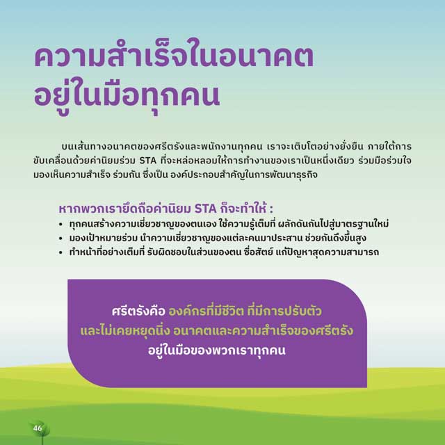 บันัเสื้นัทางอนัาคตของศรั้ตรัังแลี่ะพื่นัักงานัท่กคนั เรัาจะเติบัโตอย�างยั�งยืนั ภัายใต้การั
